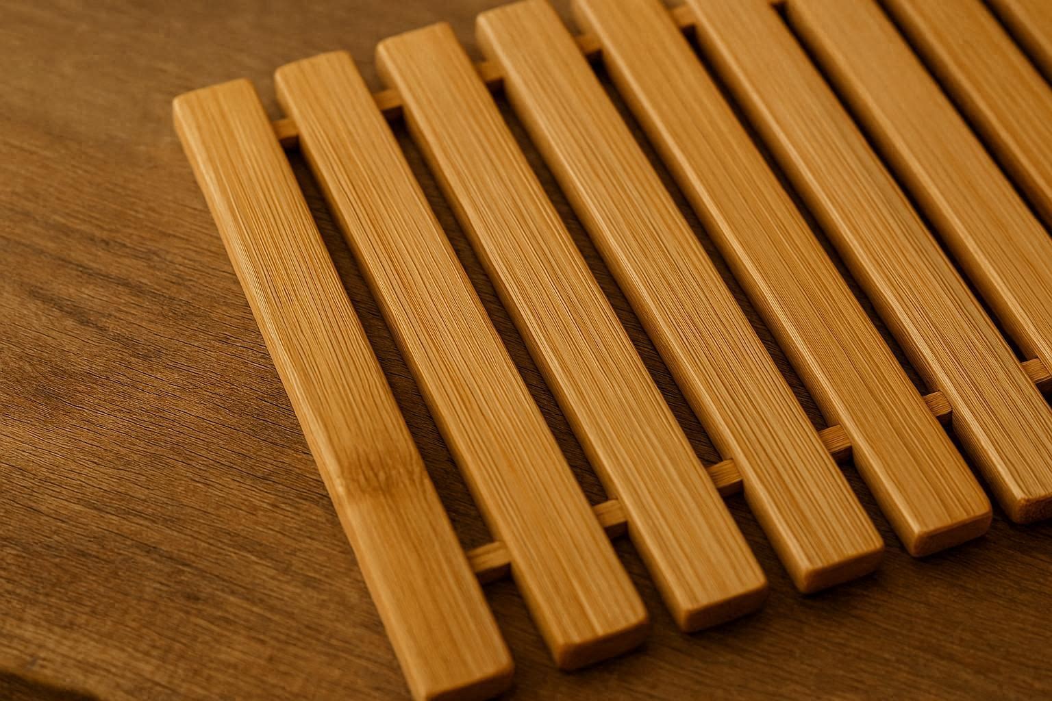 Eco Friendly Bamboo Slatted Table Pad For Natural Heat Insulation And Rustic Kitchen Counter Decor