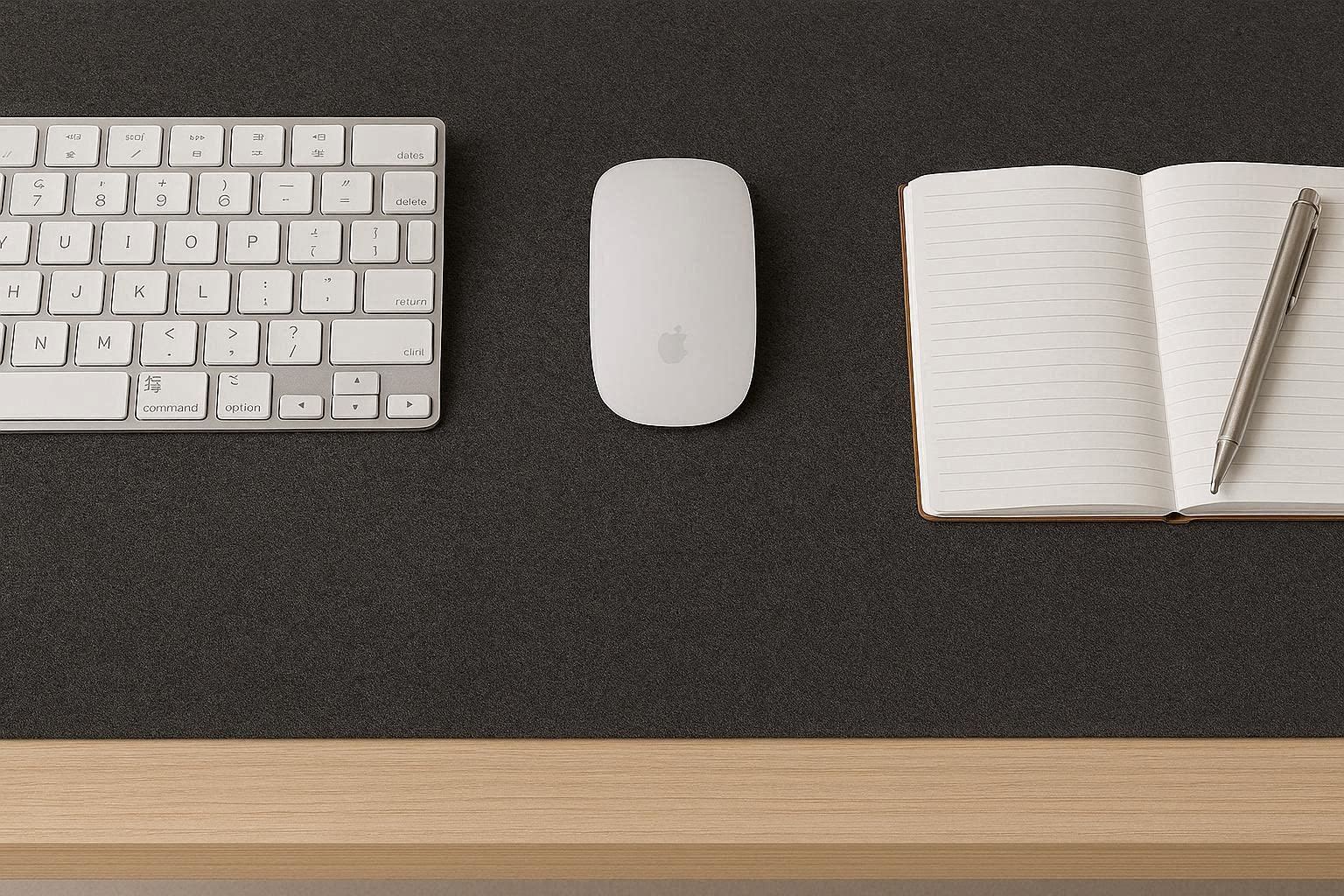 Its minimalist grey aesthetic adds a touch of modern sophistication to any home office or executive suite, making it a favorite among interior designers. Easy to clean with a quick vacuum, this durable felt pad is a stylish and functional investment that supports a professional, clutter-free, and aesthetically pleasing work-life balance.
