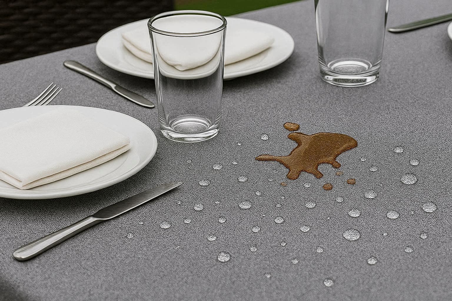 Enhance your outdoor dining experience with our waterproof polyester tablecloth, featuring a specialized spill-proof coating that makes cleanup a breeze after every meal. This durable fabric is designed to resist liquids and stains, ensuring that accidental spills from wine, soda, or food can be wiped away instantly with a damp cloth or sponge.